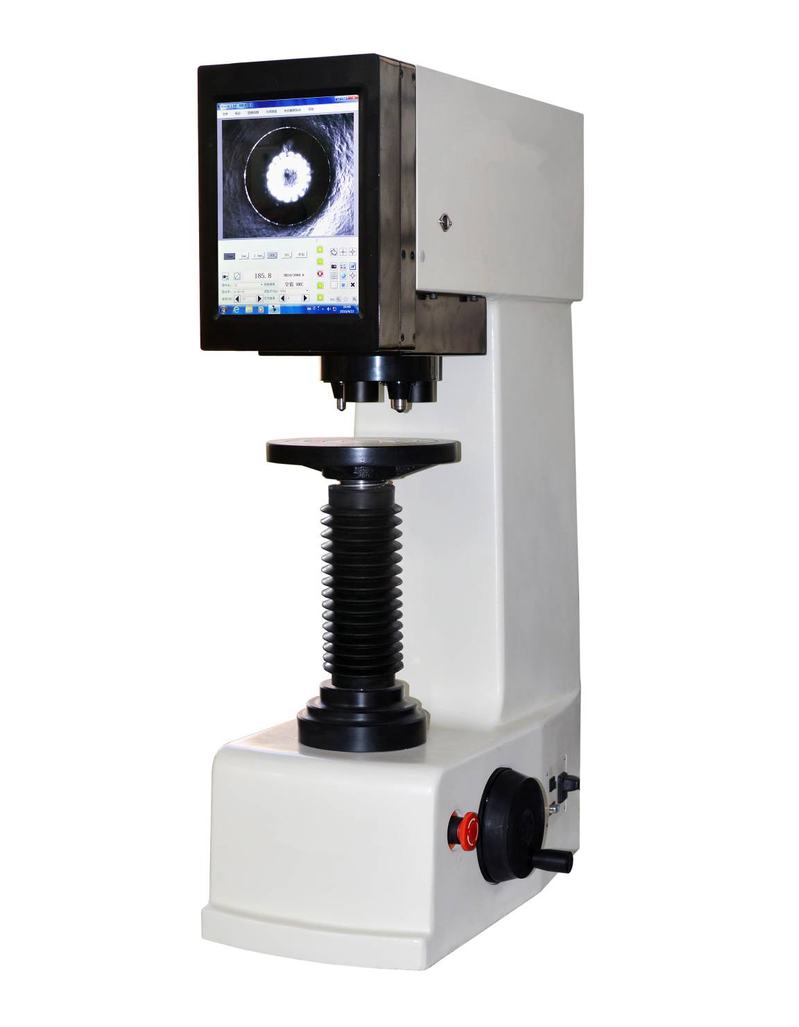 數(shù)顯電子布氏硬度計(jì)HBS-3000E是精密的機(jī)械結(jié)構(gòu)和微機(jī)控制閉環(huán)系統(tǒng)的機(jī)電一體化產(chǎn)品,儀器取消了砝碼,采用電動(dòng)加卸試驗(yàn)力,由0.5‰精度的壓力傳感器進(jìn)行反饋,CPU控制并能對試驗(yàn)中損失的試驗(yàn)力進(jìn)行自動(dòng)補(bǔ)償。壓痕可在儀器上通過測微目鏡直接測量,在大屏幕上能更加直觀地顯示試驗(yàn)力、壓痕長度、保荷時(shí)間、測量次數(shù)、轉(zhuǎn)換標(biāo)尺、日期時(shí)間,操作時(shí)只要測量壓痕按目鏡按鈕,即可自動(dòng)計(jì)算出硬度值并顯示在屏幕上。數(shù)據(jù)結(jié)果可以保存通過表格查看,也可通過內(nèi)置打印機(jī)輸出,并配有RS232接口供用戶連接電腦輸出。硬度計(jì)還可根據(jù)用戶特殊需求配置視屏測量裝置和CCD圖像自動(dòng)測量系統(tǒng)。
